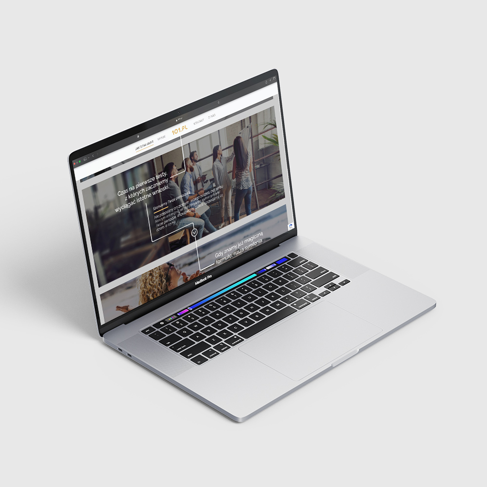 Projekt 101.pl obejmował stworzenie nowoczesnej strony internetowej typu one page dla agencji reklamowej. Serwis został zaprojektowany jako narzędzie marketingowe nastawione na maksymalizację pozyskiwania leadów oraz angażujące prowadzenie użytkownika przez treść.