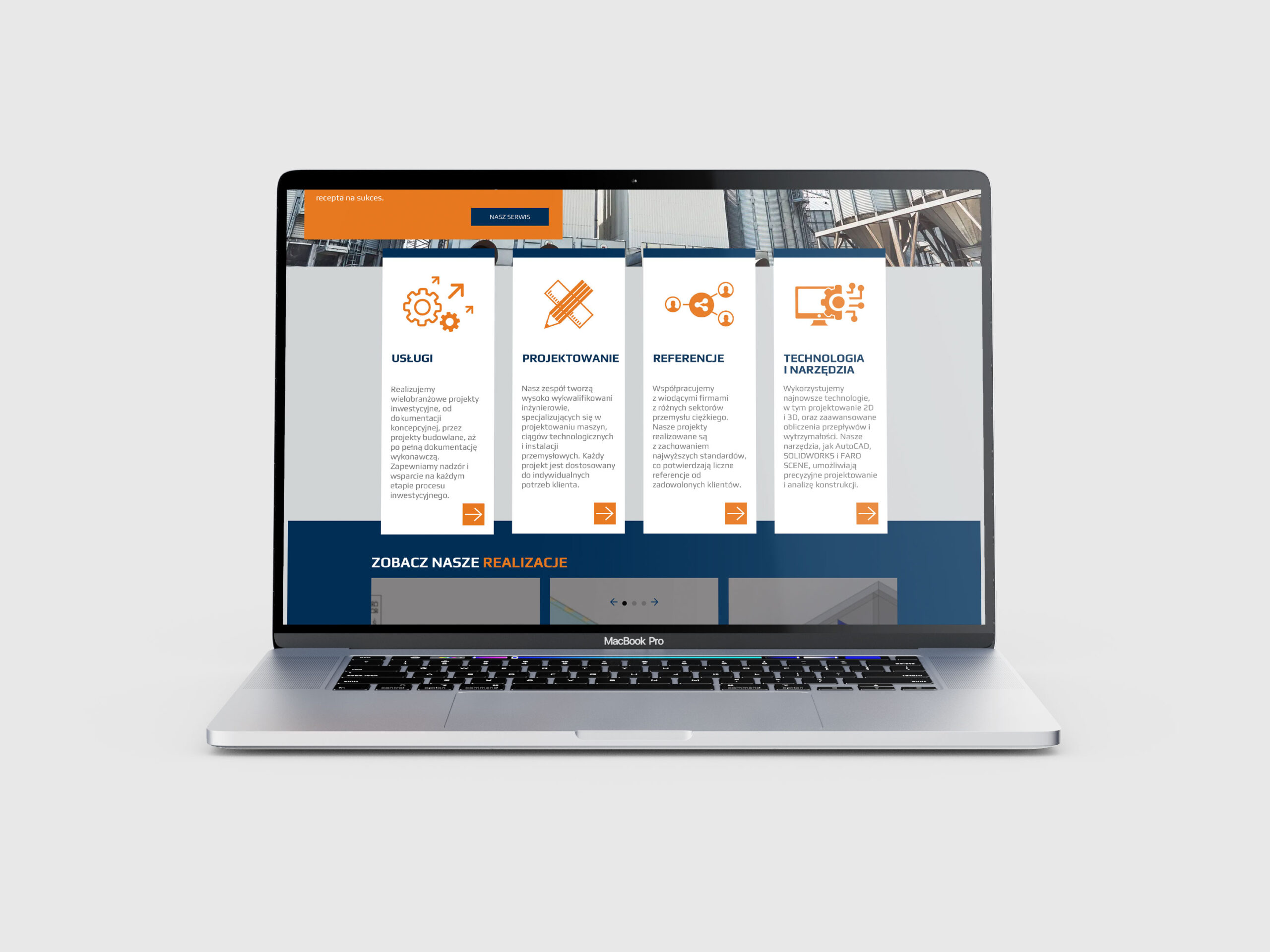 Projekt opiera się na logicznym podziale oferty na obszary kompetencji, dzięki czemu użytkownik szybko odnajduje interesujące go informacje. Każda sekcja została zaprojektowana tak, aby prowadzić użytkownika krok po kroku przez działalność firmy.