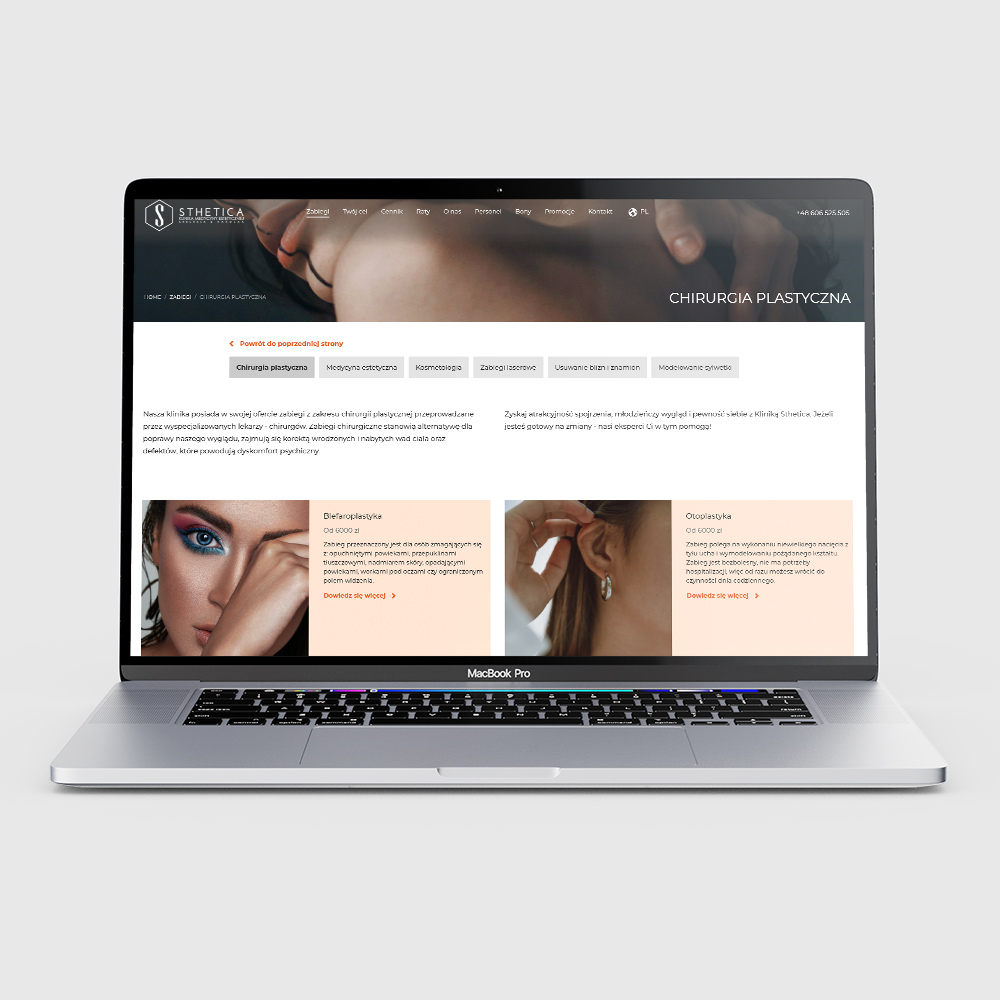 sthetica.pl to strona internetowa będąca narzędziem marketingowym dla kliniki medycyny estetycznej