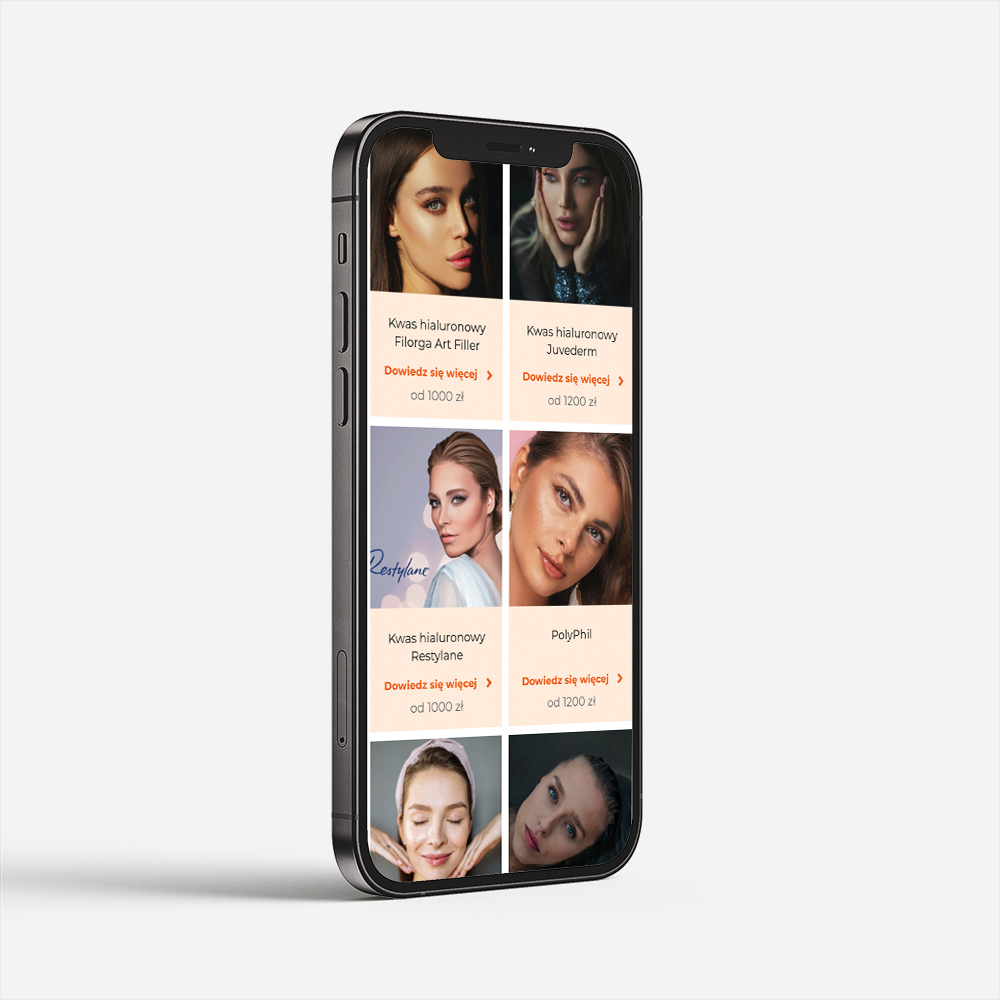 Projekt strony został oparty na strategii marketingowej, której celem jest pozyskiwanie klientów z wyszukiwarki Google. Struktura serwisu została zaprojektowana tak, aby wspierać widoczność na kluczowe frazy związane z medycyną estetyczną.