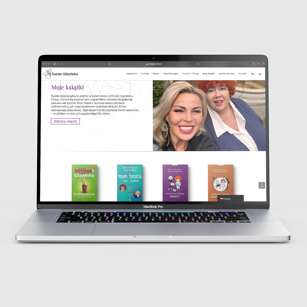 Dla Suzan Giżyńska zrealizowaliśmy autorską, dwujęzyczną stronę portfolio łączącą świat filmu i literatury w spójnym, profesjonalnym ekosystemie online. Serwis prezentuje wyselekcjonowane filmy twórczyni oraz pełną listę książek wraz z opisami, zapewniając czytelną i logiczną prezentację dorobku artystycznego. Projekt został zaprojektowany z myślą o budowaniu silnej marki osobistej zarówno na rynku polskim, jak i międzynarodowym. Szczególną uwagę poświęcono przejrzystej architekturze informacji oraz intuicyjnej nawigacji w obu wersjach językowych. Strona została kompleksowo zoptymalizowana pod SEO, wspierając widoczność nazwiska oraz twórczości autorki w wyszukiwarce Google. Dwujęzyczna struktura serwisu została przygotowana zgodnie z najlepszymi praktykami SEO, w tym poprawnym linkowaniem i indeksacją. Całość stanowi nowoczesne, skalowalne portfolio gotowe do dalszej promocji i rozwoju międzynarodowego.